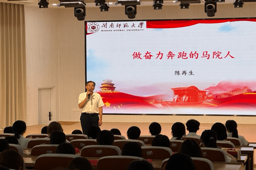 为帮助新生科学规划大学生涯、尽快适应大学生活,9月15日下午,我院院长陈再生教授于东门梯教二楼为2025级本科新生讲授了以“做奋力奔跑的马院人”为主题的“开学第一课”。