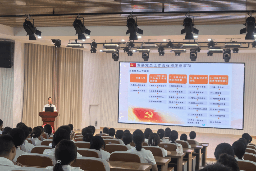 为帮助新生清晰掌握入党全流程,强化入党积极分子的政治认知与思想觉悟,9月16日下午,我院于东门梯教二楼开展入党流程专题介绍会。会议特别邀请我院党委组织员陈精焕老师为2025级本科生系统讲解入党相关知识。他强调,入党不仅是流程上的“过关”,更要在思想上真正认同党的理念,在学习和生活中以党员标准严格要求自己,树立坚定的理想信念,以认真态度对待入党过程中的每一个环节。