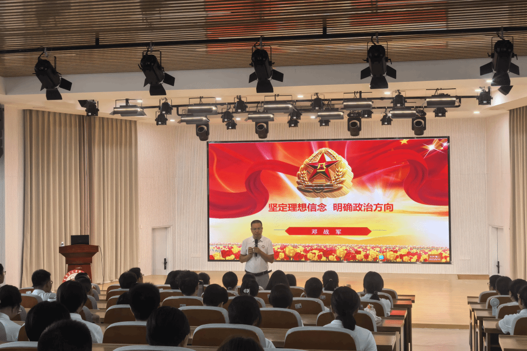 为紧紧扭住理想信念这个“总开关”,引导新生筑牢信仰之基、把稳思想之舵,9月16日上午,我院党委副书记邓战军于东门梯教二楼为2025级本科新生开展以“坚定理想信念,明确政治方向”为主题的专题教育讲座。他围绕“要不要有理想信念”“树立什么样的理想信念”以及“怎样坚定理想信念”三大维度,进行了系统而深入的阐述。鼓励同学们应努力成长为“有理想、有追求、有担当、有作为、有品质、有修养”的新时代师范生。