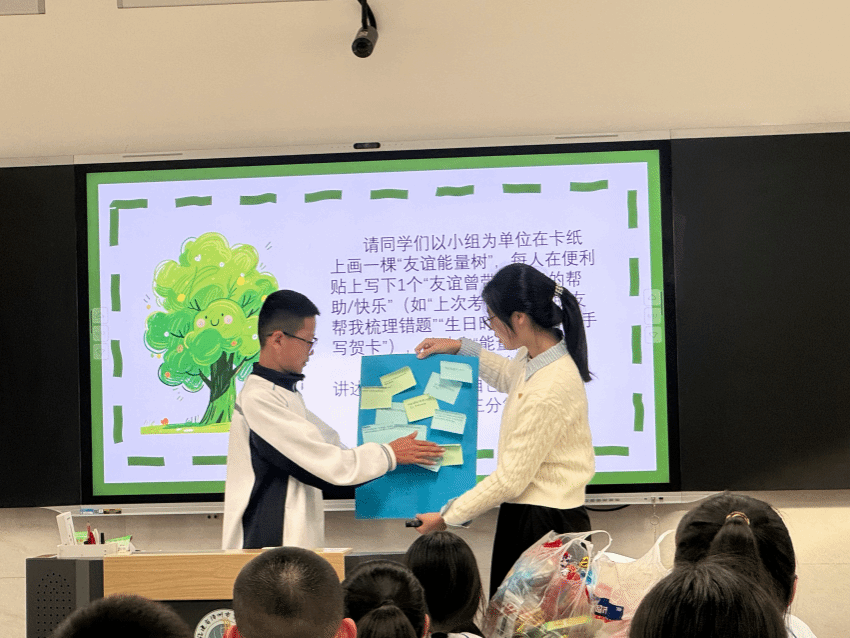 签约仪式结束后,yl88858永利集团2025级思想政治教育专业硕士研究生叶琳珊和张淑艳担任主讲人,在漳州三中初中部开展“思政送教”活动,通过课堂讲解、情景演绎与互动分享等多种形式,与学生进行深入交流。
