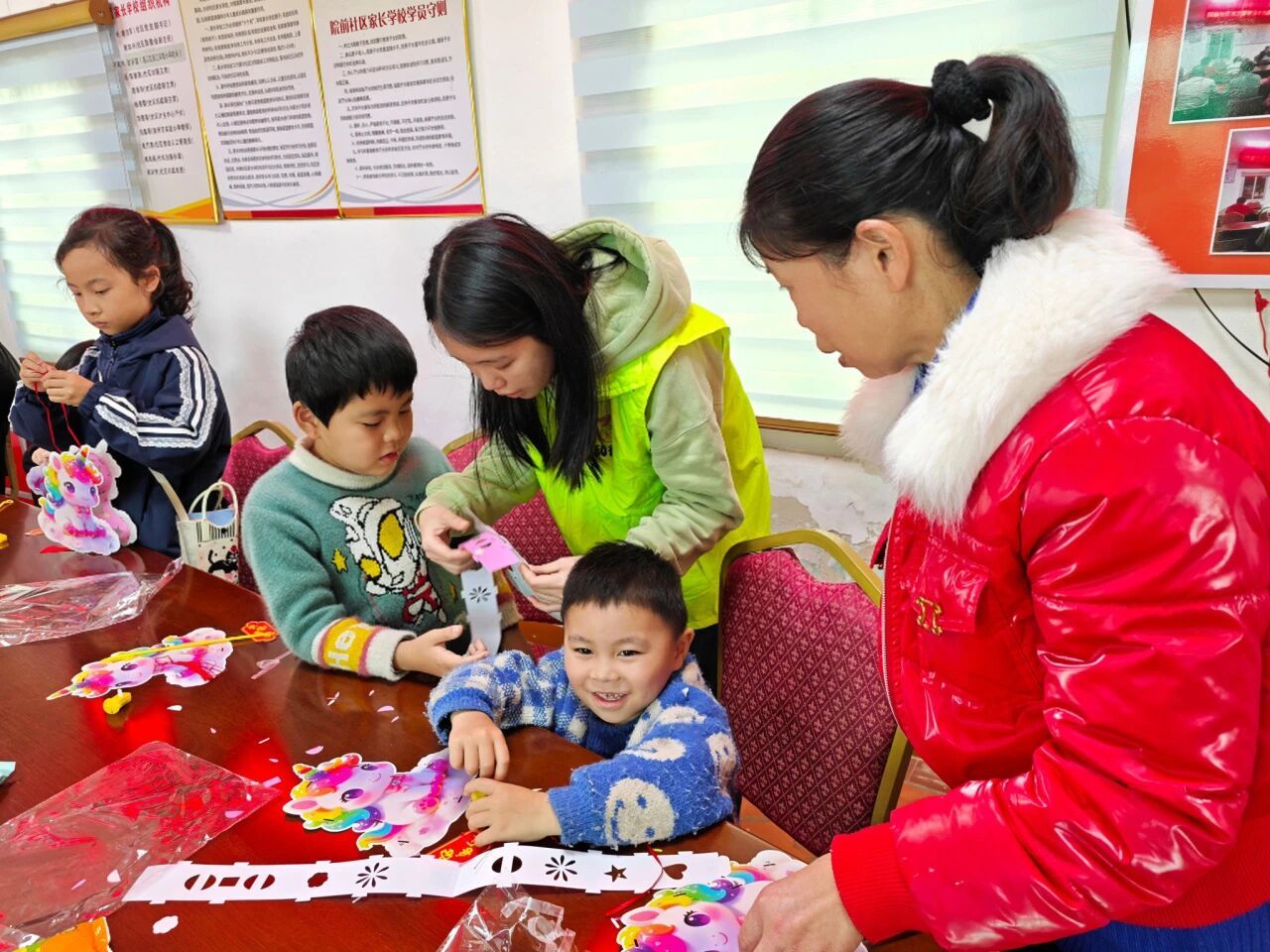 元宵节前夕,白欣琳加入“万安街道‘志愿邻里’青年志愿服务队”,积极参与院前社区元宵主题活动的组织与服务工作。在活动中,她充分发挥专业特长,创新活动形式,将传统文化传承与未成年人普法教育深度融合:通过生动讲述元宵节俗与趣味互动,引导孩子们理解“阖家团圆”的文化意蕴;在手工艺环节耐心指导花灯、剪纸制作,在实践中培养孩子们的耐心与协作能力;同时巧妙结合节日语境,用贴近儿童认知的语言讲解《未成年人保护法》相关知识与自我保护技能,使法治教育自然融入节日氛围。