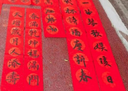 春联,作为中国传统文化的重要组成部分,寓意吉祥、祝福和美好。寒假期间,林月同学随母校老师一同参加“龙腾新春,笔墨生辉”进社区写春联送祝福活动。活动现场年味满满,社区街道的老人小孩纷纷前来观赏,更有甚者亲自落笔挥洒笔墨。她说,看着老师们以及学弟学妹们共同创作,写下翰墨飘香的祝福春联,感受到了中华优秀传统文化的魅力以及浓厚的节日氛围。活动最后完成了许多独具匠心的新春对联,鲜红的纸联为寒冷的冬天带来了丝丝暖意。
