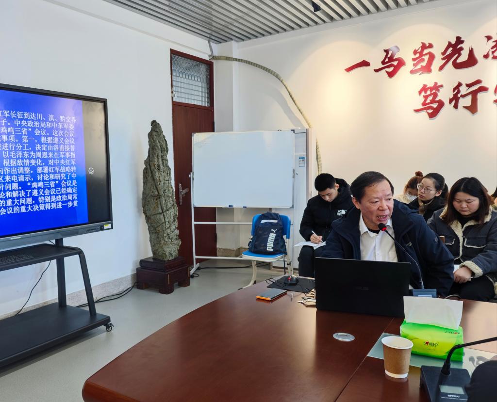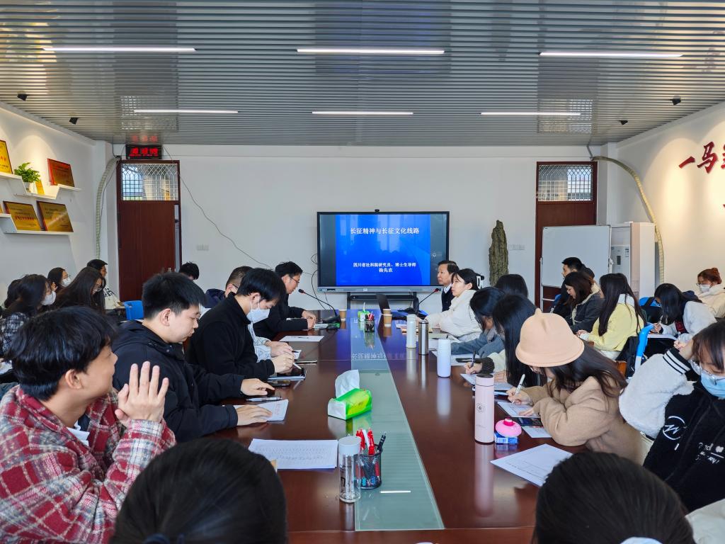 12月23日上午,四川省社科院杨先农研究员在综合楼中区404会议室为我院2023级全体硕士研究生作了题为《长征精神与长征文化线路》专题讲座。本次讲座由马克思主义中国化学位点负责人余思新教授主持。