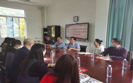 陈院长首先向闽南理工学院参观学习组介绍了我院基本情况,重点介绍了学科建设、师资队伍、思政课建设方面的成果,还介绍了我院本科生及研究生的课外实践学习情况。其中,陈再生院长提到,学院思政课教学改革侧重挖掘地方红色文化,把其作为特色和亮点来推进,打造三个特色品牌,即毛主席率领红军攻克漳州、东山谷文昌精神、古田会议纪念馆,组织全校学生开展思想政治理论课+暑期三下乡专项调研活动,实现实践教学全覆盖,促进教育教学课程改革。其次,双方就教师编制、博士比例、人才引进、政策支持、思政课教师选拔等方面进行了深入交流。最后,杨祥冰院长对我院教学成果、学科建设和师资队伍建设的情况和经验表示肯定,提出两院之间要加强本科教学科研活动的交流,并且不断创新教学手段和教学模式。此次交流我院教师团队和闽南理工学院参观学习组均受益匪浅。