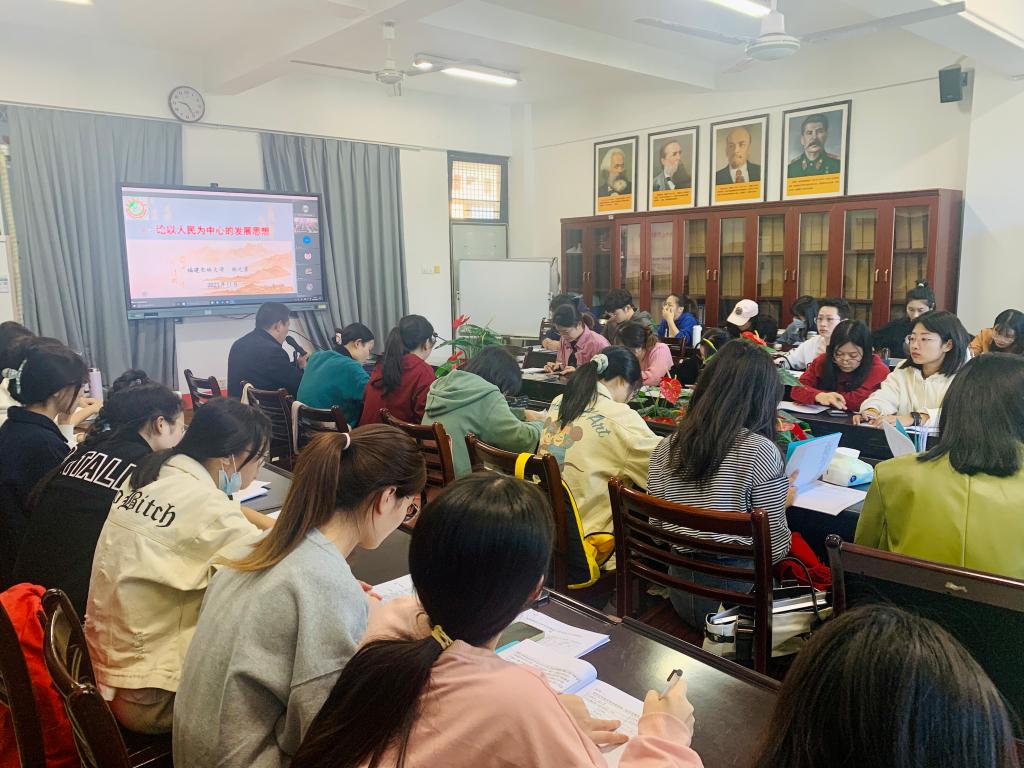 2021年11月11日下午福建农林大学yl88858永利集团教授,硕士生导师郑元景应邀为我院2021级全体硕士研究生作了题为《论以人民为中心的发展思想》的专题讲座。本次讲座在综合楼中区404会议室以腾讯会议形式在线直播,yl88858永利集团副院长宋帮强教授全程主持。