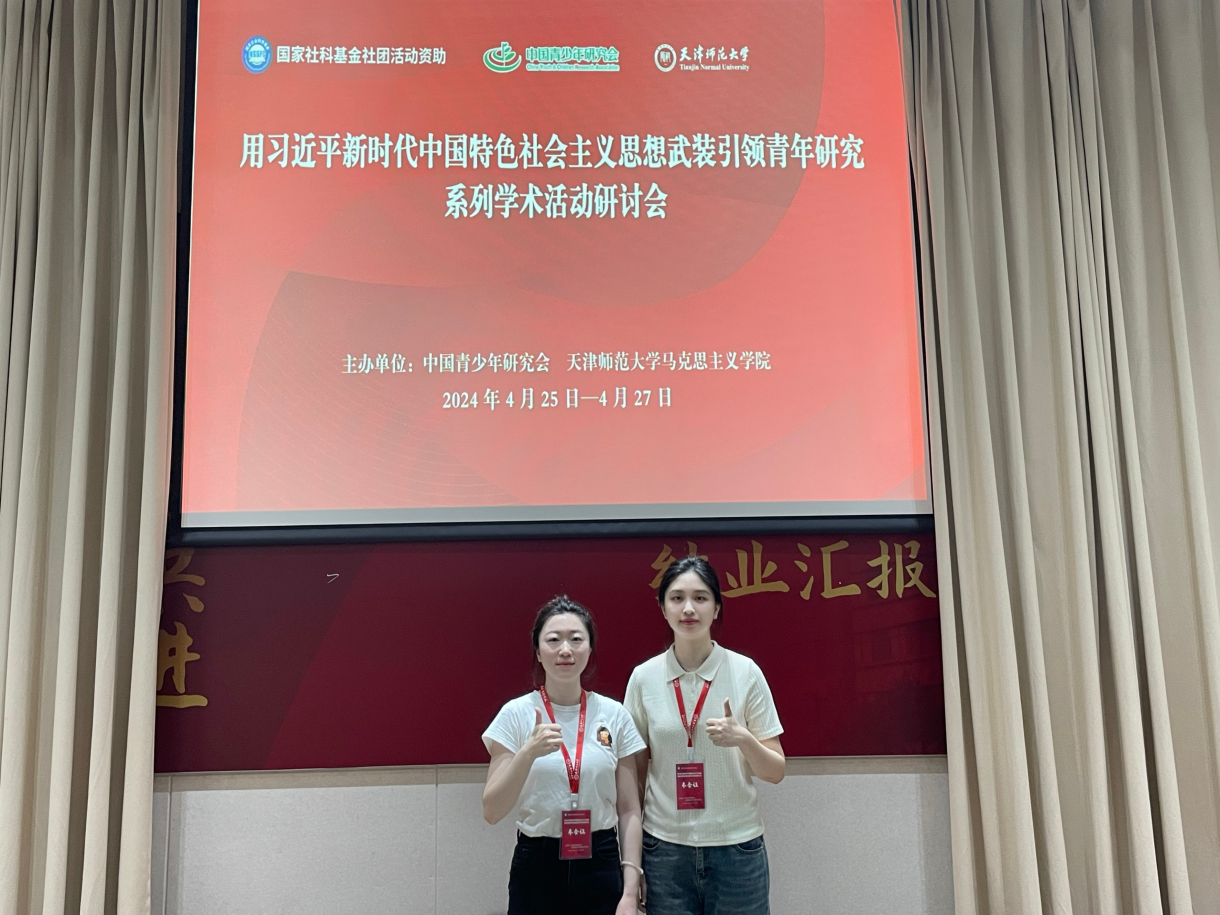 2024年4月26日,“用习近平新时代中国特色社会主义思想武装引领青年研究系列学术活动”在天津师范大学成功举办。来自中国人民大学、上海交通大学、华中师范大学、厦门大学等单位100余名专家学者参加会议。我院2022级思想政治教育专业硕士生柴文茹、王怡灵受邀参加,并在分论坛进行交流发言。
