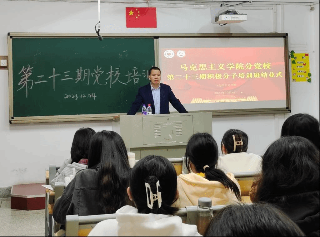 12月4日晚,我院分党校第二十三期入党积极分子培训班结业式在综南201举行。院党委副书记邓战军、党委组织员陈精焕以及全体学员参加。