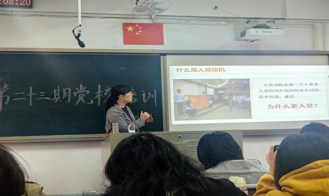 11月19日上午,我院第二十三期入党积极分子党校培训第三讲在综南201举行。本次培训以“涵养初心,淬炼本领——谈谈大学生入党动机的确立与实践”为主题,由陈晓蕾老师主讲,全体入党积极分子参加。