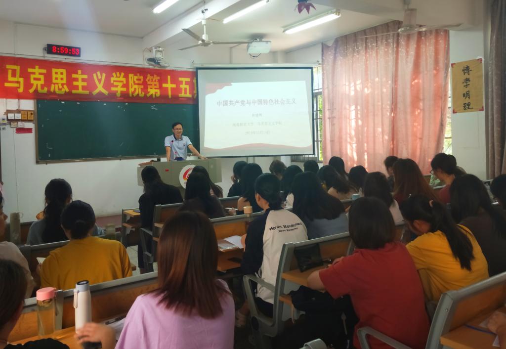 10月19日上午,我院于综南201举办第十五期分党校培训班第三讲。本讲主题为“中国共产党与中国特色社会主义”,由教师第四党支部书记林建辉副教授主讲,全体入党积极分子参加了此次培训。
