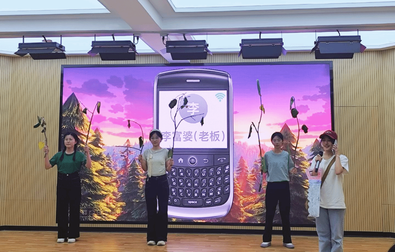 不知道对不队由达理2A402宿舍和达理2A403宿舍共同组成,她们带来的情景剧《生态新章:白雪公主的绿色征程》讲述了一个充满童话色彩的环保故事,选手们通过生动的表演呼吁大家共同守护绿水青山,传达出绿色主题。