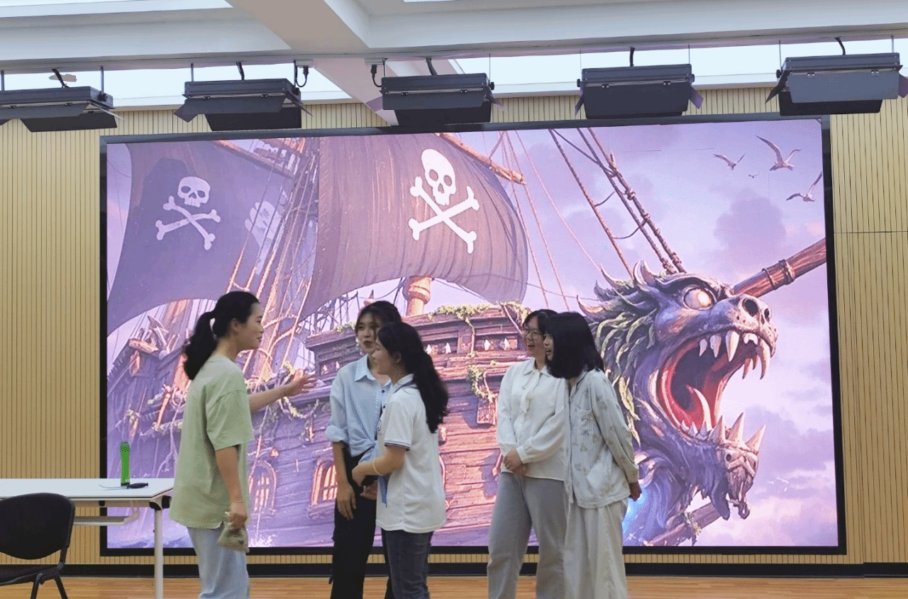 五颜六色队由达理2A505宿舍和达理2A506宿舍携手组成,她们的作品《贝加尔湖畔》通过演唱加情景剧的方式,展现了大自然的美好,让观众们感受到了那片纯净湖水的诗意与浪漫。