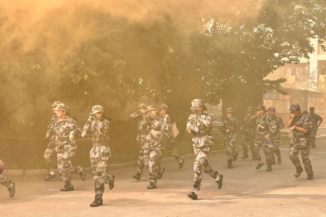 军训,是体能的试炼,更是意志的锤炼与团队精神的凝聚。每一天,从清晨的站军姿、走正步的磨练开始。双腿虽已颤抖不止,但身姿依然挺拔;汗水虽已浸透衣衫,但口号依旧响亮。正是这些看似简单却需要反复练习的动作,让大家懂得了什么是坚持,什么是标准。内务整理中,一床被子叠了又拆、拆了又叠,直到棱角分明;应急演练时,从最初的慌乱到后来的沉着有序——2025级的同学们,正是在这一个个细节里,将纪律与规范刻入心间。
