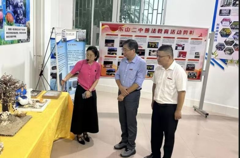 当日下午,我院师生在东山二中厚德楼演播室开展大中小“思政金课”观摩与交流活动。活动中,东山一中陈秀芳老师以《坚持人与自然和谐共生,走绿色发展道路》为主题,结合东山生态治理的生动案例,引导学生深入理解绿色发展的时代意义;陈春苗老师则打造了一堂《沉浸式思政课:一场跨越时空的青春对话》,通过呈现东山一中特色舞台思政课作品,让学生在沉浸式体验中感悟红色基因。