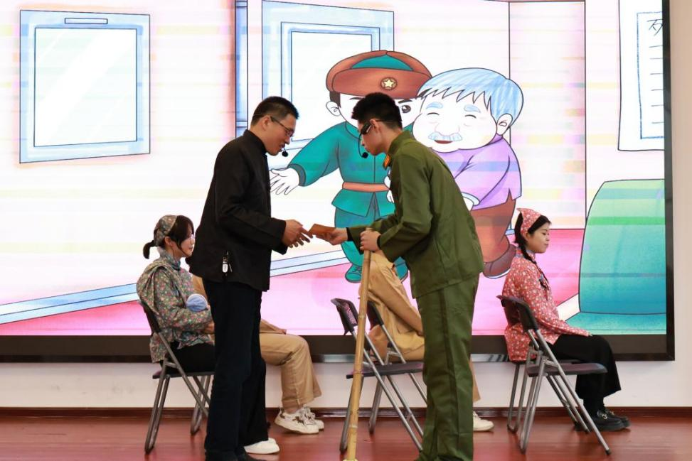 在整场情景剧中,教师代表联合2023级硕士研究生以鲜明的人物塑造、紧凑的故事情节和饱满的情感演绎,让雷锋同志的形象可感可及,将雷锋精神融入日常、化作经常,成为孩子们扣紧第一粒扣子的精神指引。