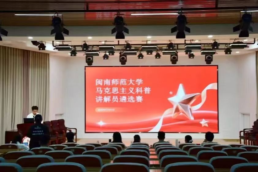 为深入学习宣传贯彻党的二十届四中全会精神,进一步加强马克思主义理论科普基地建设,11月11日晚,我院于东门礼堂举办马克思主义科普讲解员遴选赛。”来自学院各年级的优秀学子齐聚东门梯教二楼,以声传情、以言明理,为现场观众呈现了一场思想与智慧的盛宴。我院老师李德栓、马怡、林志芳、辛如彬、郭娇斌担任评委,副院长林海燕、姚禹老师出席本次活动。