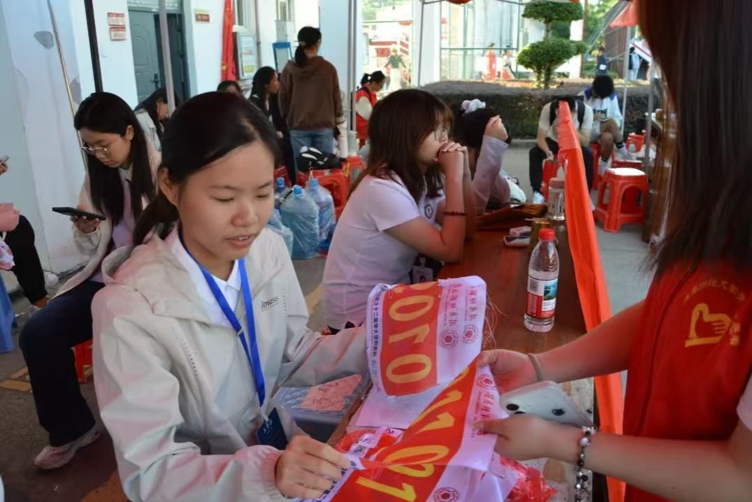 学生会干事卢梓婧说道:“很荣幸成为这次运动会的工作人员,我是负责给运动员提供钉鞋的。我一开始觉得19双钉鞋都提过来实在是很麻烦。但是在后来给运动员提供和整理钉鞋的过程中,感到十分有意义。因为在这过程中,不仅感受到了学姐和同事提供帮助的温暖,还收获了帮助运动员的成就感。”