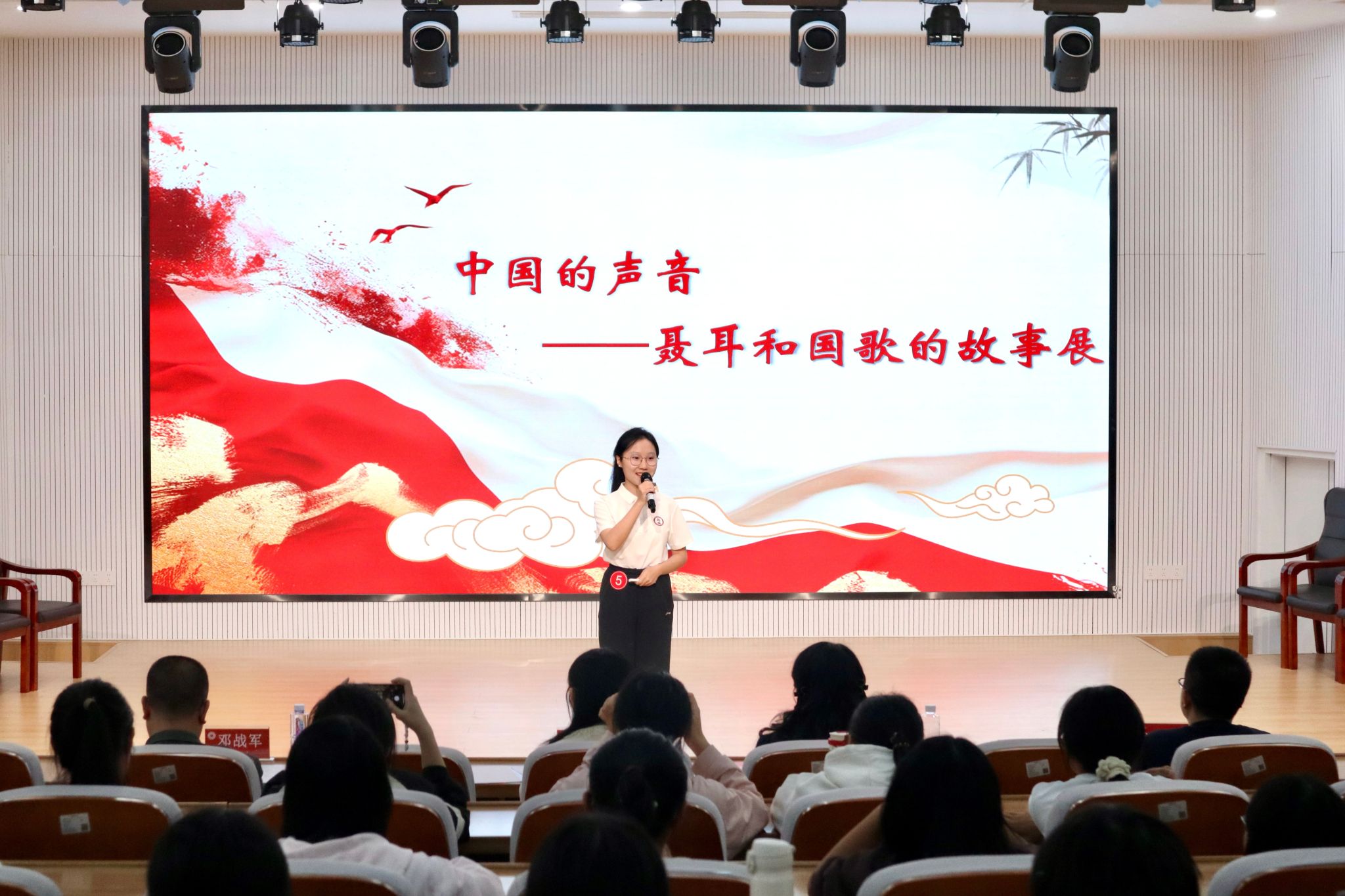 前半场,博物馆赛道的讲解员们紧扣“国歌精神”主题,或回溯国歌诞生的抗战历程,或结合乐谱细节解读赤诚初心,或分享青年如何以“前进”之志践行强国担当,以鲜活表达让国歌精神可触可感,展现马院学子的赤子情怀与时代风貌。