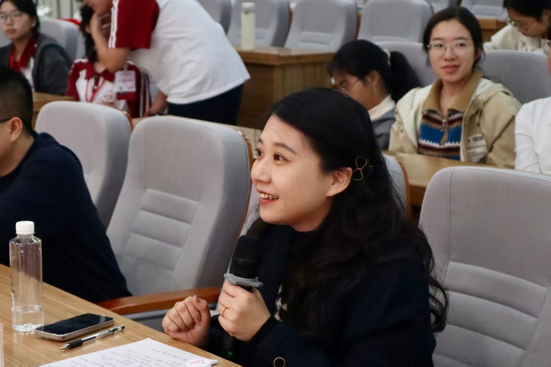 后半场,讲解员们紧扣“女排拼搏精神”主题,或讲述女排赛场攻坚的拼搏故事,或结合自身感悟阐释女排精神的时代内涵,或分享青年如何以女排精神践行使命担当,以生动表达让女排精神可感可触,展现出马院学子的青春风貌。