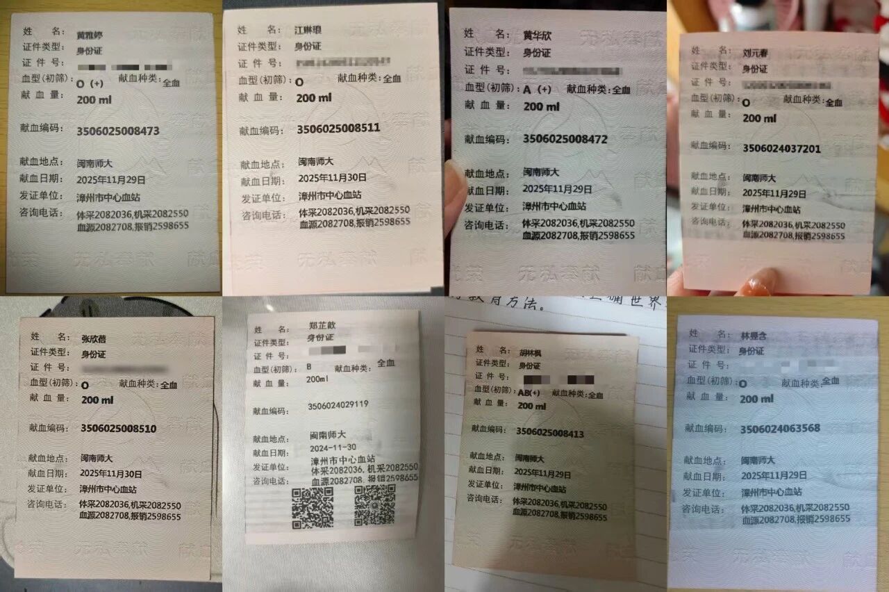 首次献血的田心怡同学坦言,起初难免有些紧张,亲身参与后却倍感温暖;已是第二次献血的颜烨晴同学则表示,相较首次,此次过程更为从容笃定,更坚定了用热血传递爱心的信念。
