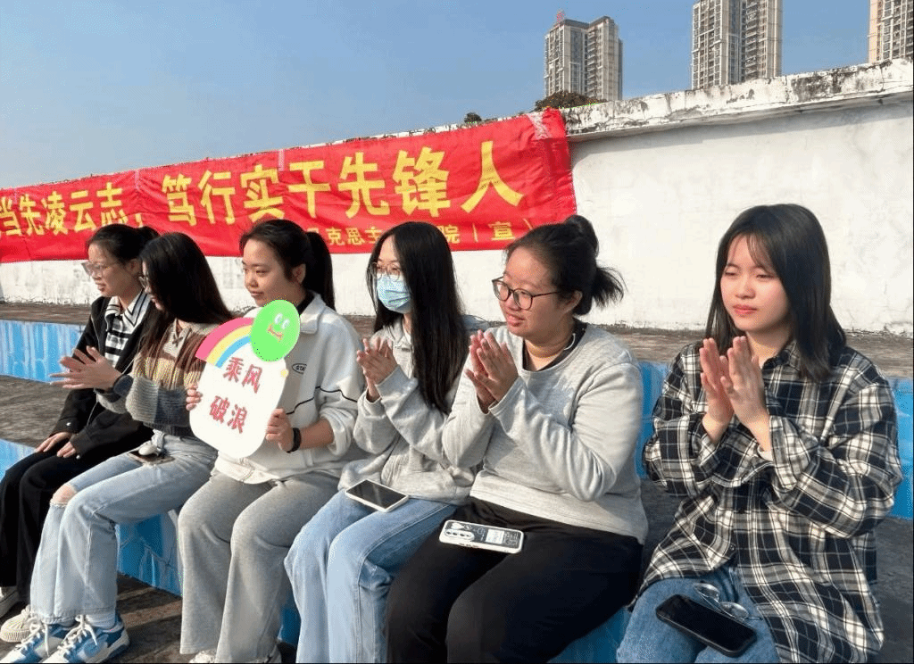 观众席上,场外观众们如雷鸣般的欢呼声为运动员们增添了动力,马院的同学们积极挥舞着双臂,为自己关注的运动员们喝彩,他们的期待与鼓励响彻云霄,给予运动员们源源不断拼搏的支持。