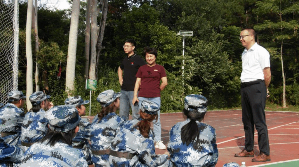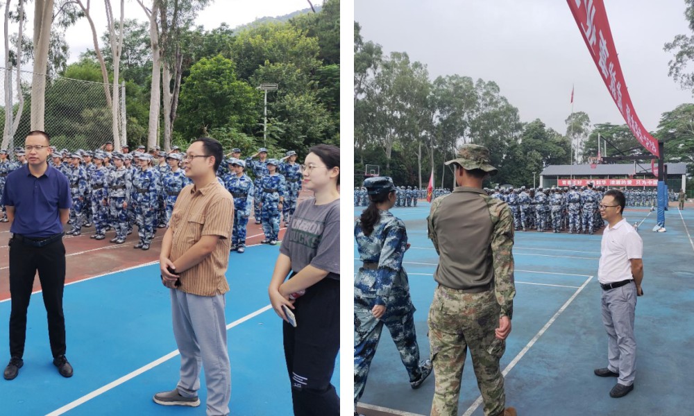 淬火前行,致敬军人。“立正”“向右看齐”“向前看”......嘹亮的口令声响彻圆山,铿锵的口号声振奋人心。“学军人风采,强自身素质”,在教官的带领下,2023级新生向前来看望的老师们展示了握拳、抱腹、摆臂、踏步等一系列军事动作,尽显军训“军味”“兵味”“战味”。