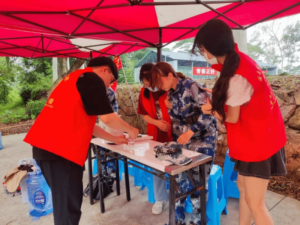 志愿青春,团结有爱。军训现场,为让我院参训新生后顾无忧,除了挥洒汗水的“迷彩战士”,还有一批主动请缨、默默奉献的青年志愿者们。从提供饮用水与常用药物,处理一些轻微的擦伤、扭伤、晒伤,到进行更专业的急救,所有志愿者都以饱满的精神和热情的态度坚守在自己的岗位,奔走在服务新生的前线,他们为军训安全保驾护航,为新生成长呐喊助威,用耐心与爱心给新生营造满满安全感。