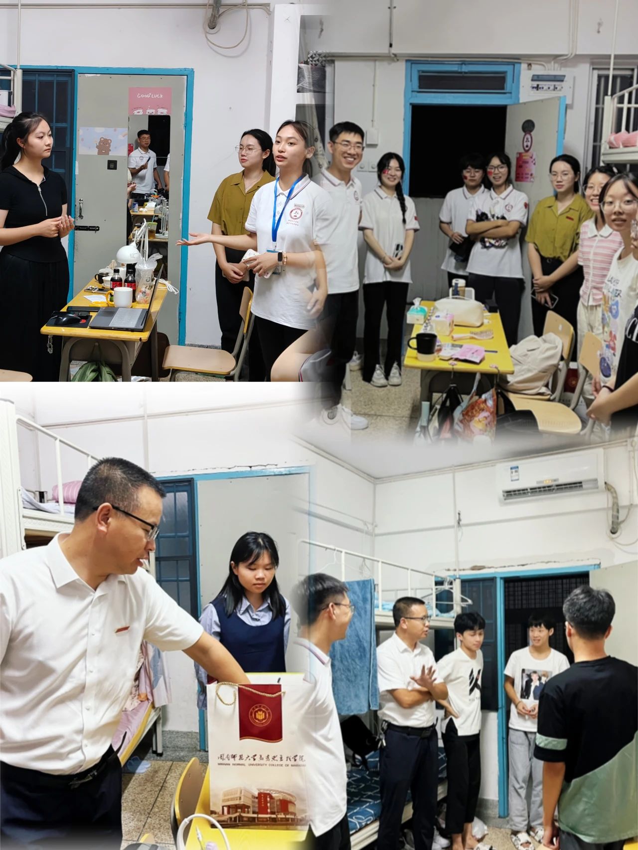 学院领导、老师及带班学长学姐一行深入学生宿舍,了解学生在学习生活方面存在的困难,为她们答生活的疑,解学习的惑。师生情在谈话中迅速升温,心与心的距离不断拉近。