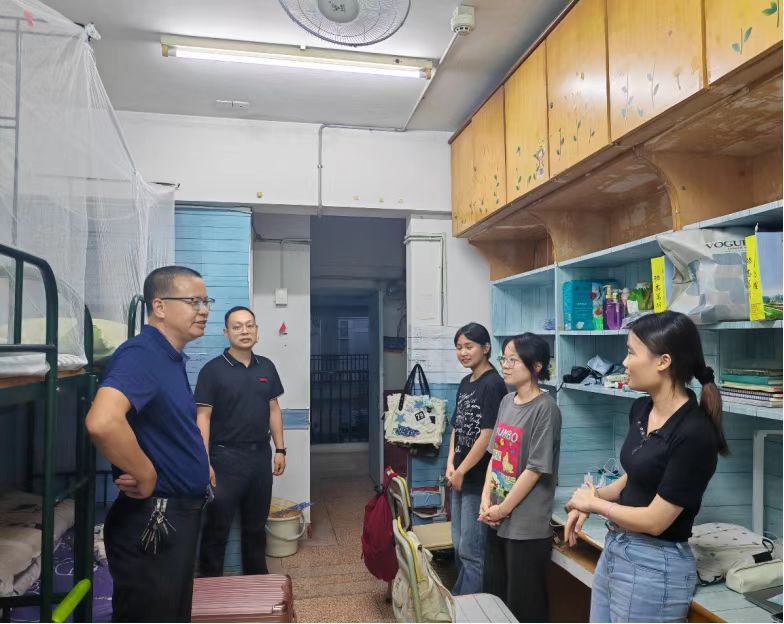 为深入了解我院2024级新生的入学情况,传达学院对广大学子的关怀与问候,帮助新生尽快融入大学生活。9月7日下午,院党委副书记邓战军、副院长林海燕、团委副书记潘怀杰以及全体辅导员一同走访2024级新生宿舍。