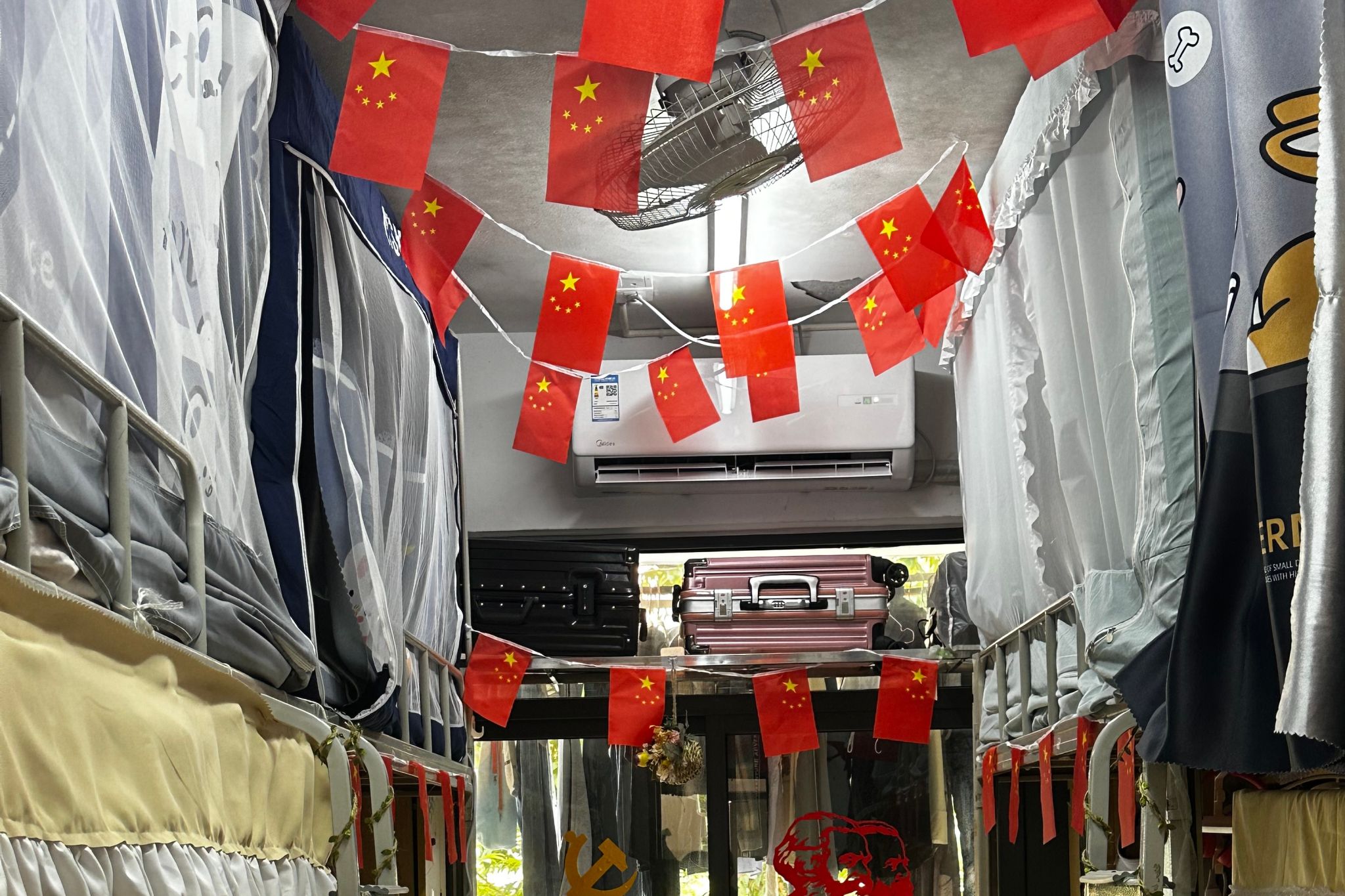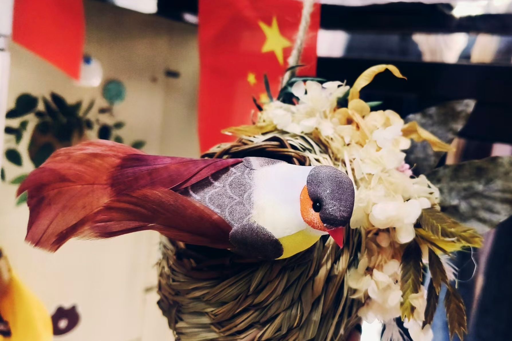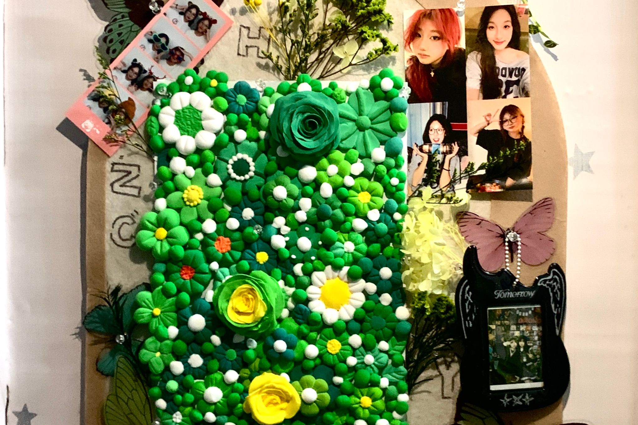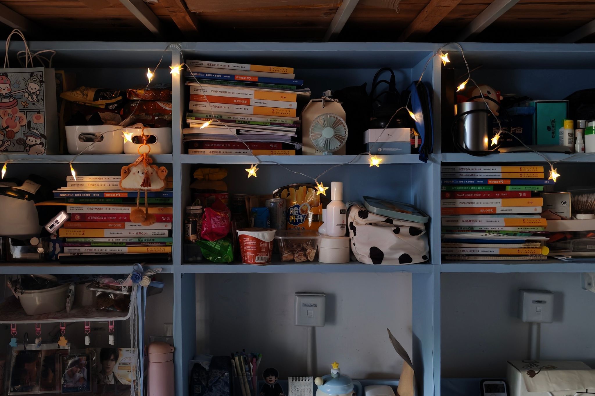 欢迎来到达理2A407宿舍,这里是绿色与个性交织的奇妙空间。宿舍门上,她们牵了一条姜饼人,并就地取材,将从校园里捡来的落花细心地别在上面作为装饰。蓝色的墙纸上是由达理2A407成员们共同绘制的各种可爱简笔画,让整个空间都洋溢着温馨与活力。镜子上装饰着来自各个宿舍成员日常收集的各类贴纸。同时,他们还以星星灯作为装饰,暖调的黄色星光,温暖着回到宿舍的每位成员。阳台的玻璃门也别有洞天。他们用废弃的纸张为材料,细心绘制上具有鲜明民族特色的动物“龙” 。玻璃门上还贴着宿舍成员悉心制作的干花,他们希望将花朵短暂的绽放定格为永恒的美丽。这就是他们的宿舍,一个充满个性、将绿色环保理念的独特空间,是他们绿色梦想的栖地。