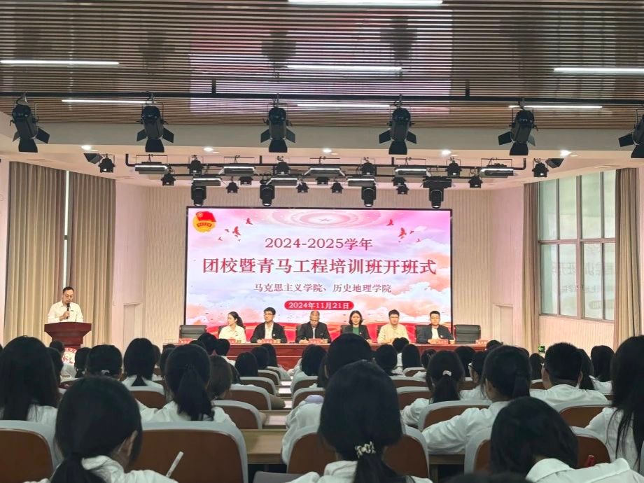 11月21日下午,我院与历史地理学院于东门马院礼堂联合举办团校培训暨青马工程培训班开班仪式。我院党委副书记邓战军、历史地理学院党委副书记邱文芳及部分辅导员出席活动,我院团委副书记潘怀杰主持开班式。