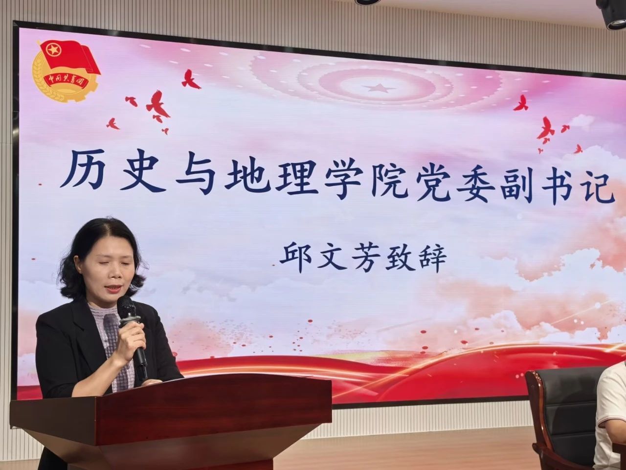 最后,我院党委副书记邓战军与历史地理学院党委副书记邱文芳共同为本次团校培训班授旗。