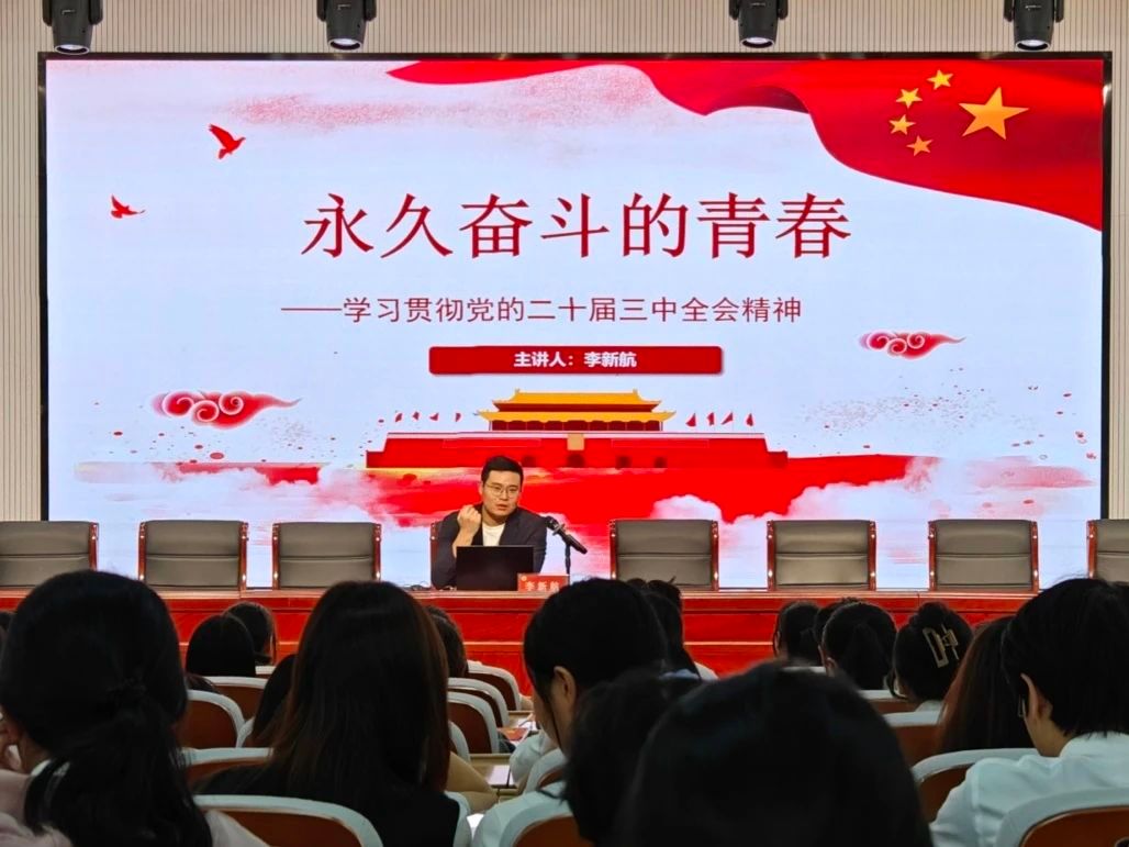11月24日下午,艺术学院团委副书记李新航老师以《学习贯彻党的二十届三中全会精神》为主题,带领学员们深刻领会全会精神的丰富内涵和实践要求,鼓励各位学员踔厉奋发、砥砺前行,以实际行动书写无愧于时代的青春华章。