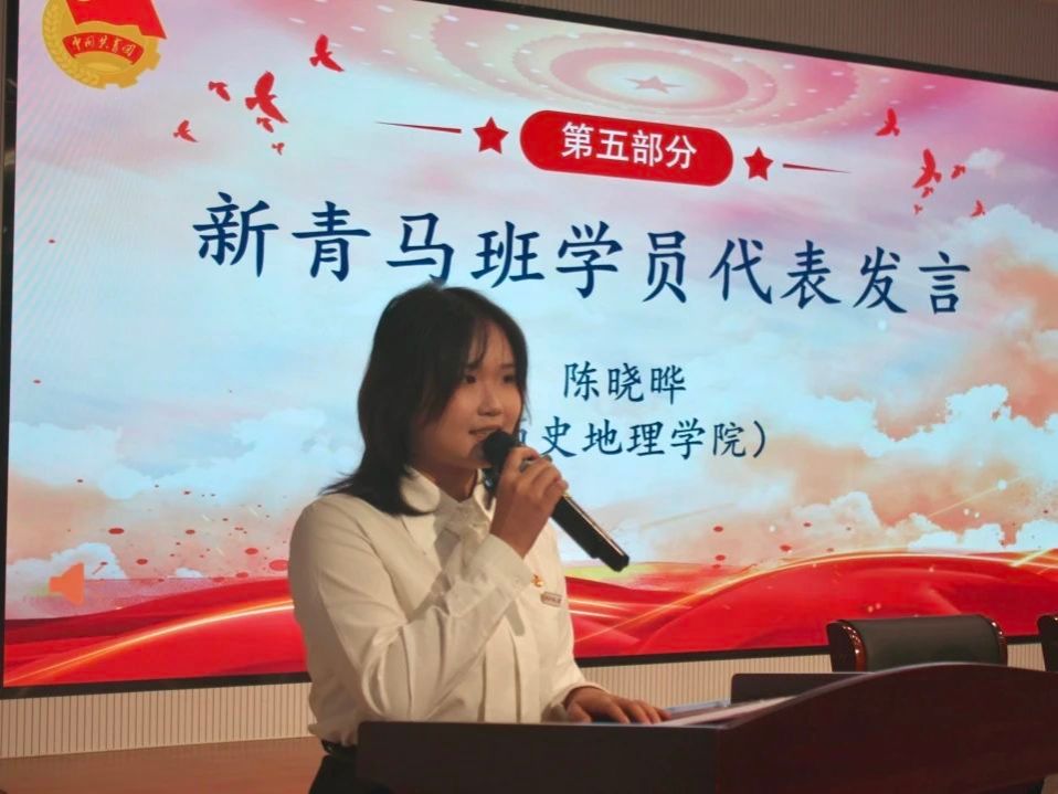 随后,我院优秀团员代表王婷与历史地理学院青马班学员代表陈晓晔相继发言。