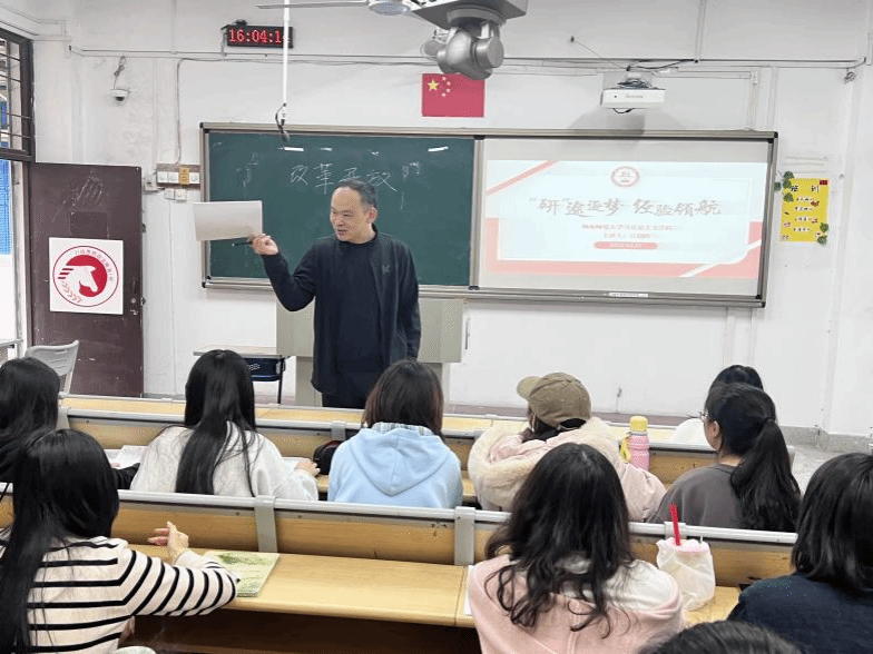 12月27日下午,我院江晓晖副教授于综合楼南201开展“研途逐梦,经验领航”专题讲座,2026届考研学子参加。(通讯员 沈书伊)