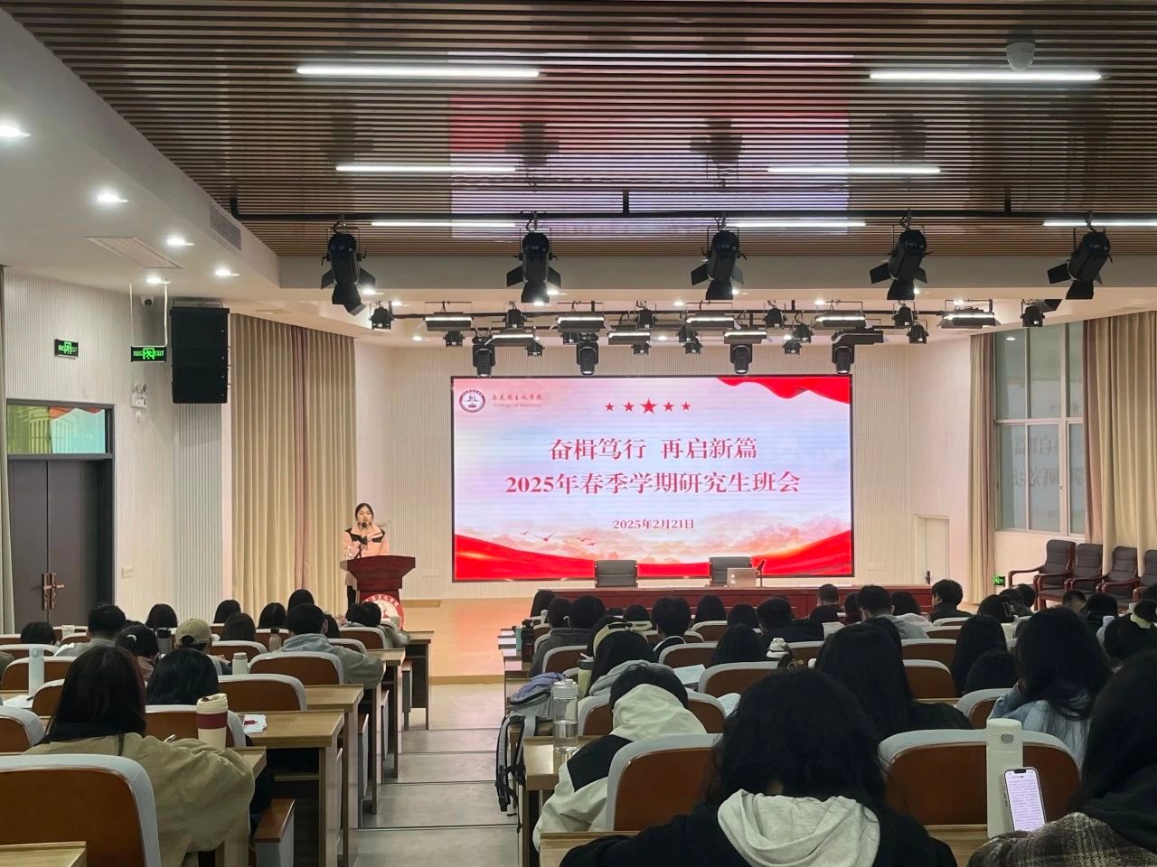 随后,学院团委副书记潘怀杰介绍近三年我院研究生就业情况和当前严峻的就业形势。发言中,他结合最近火热的国产电影《哪吒2》的相关内容和人工智能软件“深度求索”的发展历程,启发同学们在人工智能时代积极应对各种挑战和困难,鼓足干劲,保持“我想试试”的精神风貌,勇往直前。