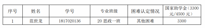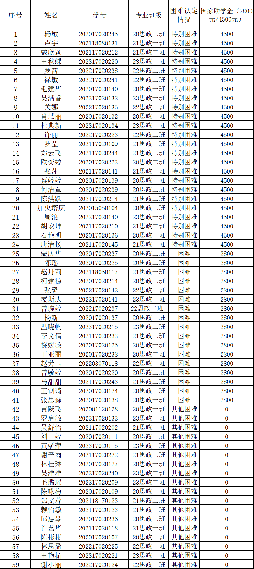 根据《85588永利集团家庭经济困难学生认定工作及国家助学金评定暂行办法(修订)》(学工〔2023〕25 号)文件要求,现将我院2023-2024学年国家助学金评定名单公示如下: