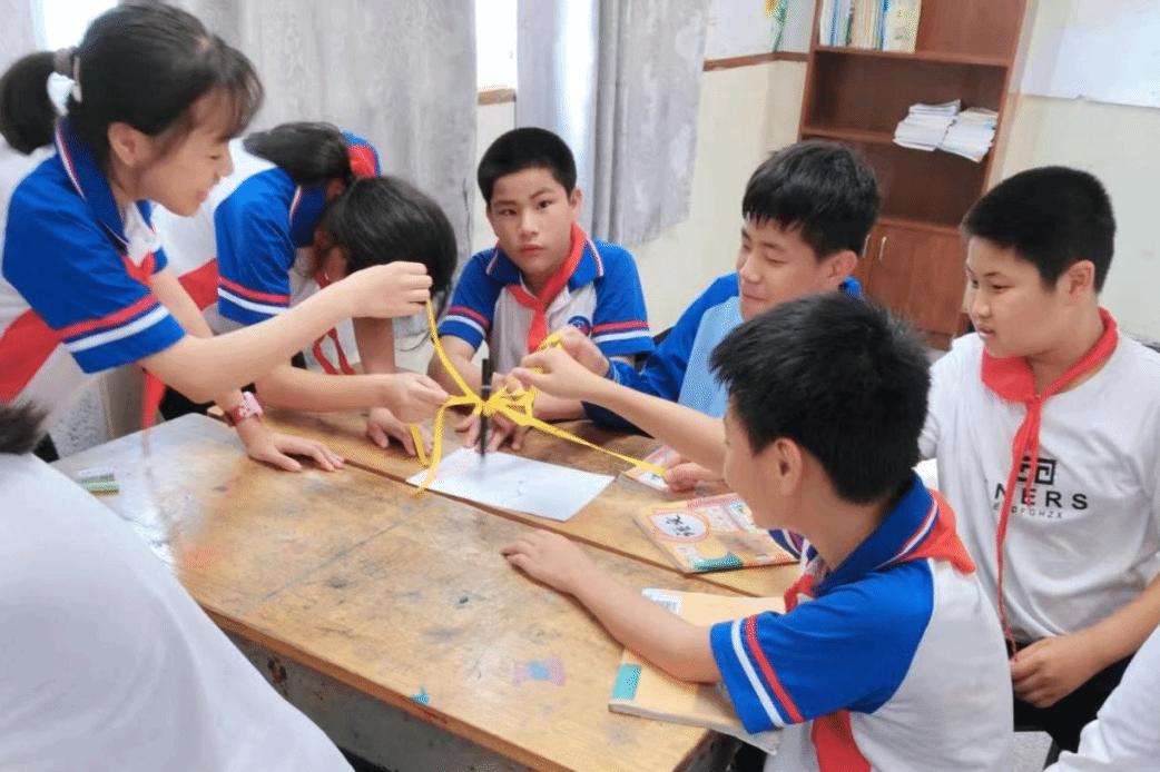 五年级团辅活动由我院24级学科教学(思政)专业研究生林靖婷主讲、柴澍敏协助,聚焦“从‘我’到‘我们’的成长蜕变”。活动以“一根筷子易折断,一把筷子难折断”的互动演示和团结主题视频开场,引导学生理解班级凝聚力的重要性。在“神笔马良”游戏中,5组学生各8人通过拉绳子末端合作书写“团结就是力量”,亲身体验团队协作与合理分工的关键。学生代表分享游戏感受,总结成败原因,教师也进一步引出团队意识的重要性。“生活处处有团结”环节,通过拔河、大扫除等图片,引导学生发现生活中的合作场景,深化对团结美德的认知。最后,“团结让生活更美好”部分的互动教学更是进一步深化了学生的集体荣誉感与合作意识。