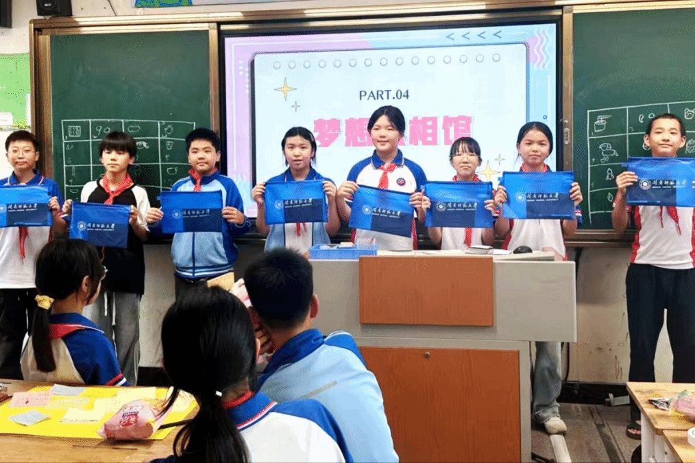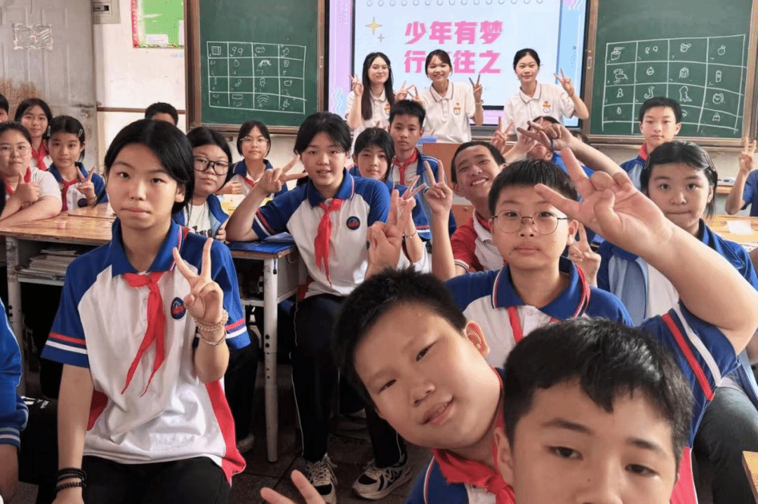 六年级团辅活动由我院24级学科教学(思政)研究生黄诗琴主讲,24级研究生林孟、许玮琳协助,以“少年有梦,行必往之”为主题。活动伊始,“绘制少年梦想”环节让同学们在纸上书写自己的梦想,“宣告少年梦想”环节,同学们怀揣着对未来的憧憬走上讲台分享自己的梦想。“张贴少年梦想”环节,同学们分组用梦想装饰卡片,让色彩斑斓的拼贴画承载同学们纯真的憧憬。“梦想照相馆”通过展示AI生成的职业照,与梦想中的自己合影激发了学生对未来的向往。“昔日少年梦想”环节借助纸条图片与视频,使抗战英雄“世界和平”的梦想与今日繁华的联动起来,让学生感悟梦想的传承。最后,“今日中国梦有我”环节使学生认识到中国梦并非遥不可及的宏大愿景,而是由无数个像自己这样的个人梦想汇聚而成。只有当个人梦与中国梦同频共振,才能汇聚起推动国家发展、民族进步的磅礴力量。