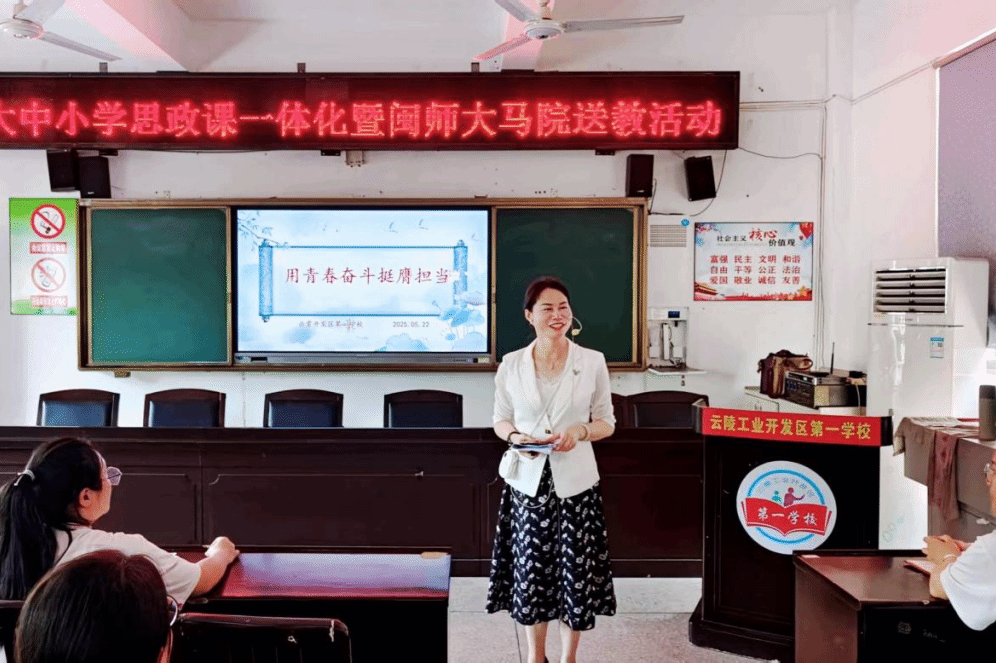 为深入贯彻落实中共中央办公厅、国务院办公厅相关文件精神,推进大中小学思政课一体化建设,2025年5月22日,在yl88858永利集团院长陈再生、辅导员潘怀杰的带队下,学院组织思政学科送培送教讲师团前往云霄云陵工业开发区第一学校开展下沉式培训活动,走进中学部、小学部,扎实推进大中小学思政课一体化建设。