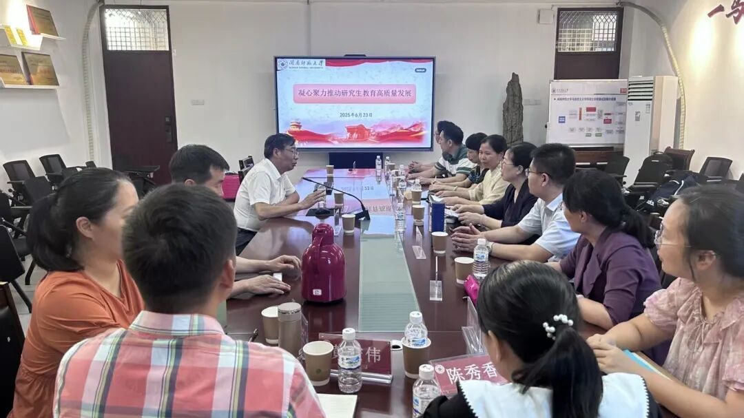 会上,陈再生院长和吴学兵教授分别做了“凝心聚力推动研究生教育高质量发展”和“守正学科根基,创新培养模式——闽师思政学位点建设的十年实践与探索”的主题分享,并重点介绍了学院在研究生培养模式构建、课程体系优化及实践机制创新等方面的经验做法。龙岩学院方面介绍了学院办学和硕士点建设的相关情况,并希望在研究生培养方案制定等方面得到指导和帮助。最后,双方围绕研究生培养模式、课程体系、实践机制等核心议题展开深入研讨。