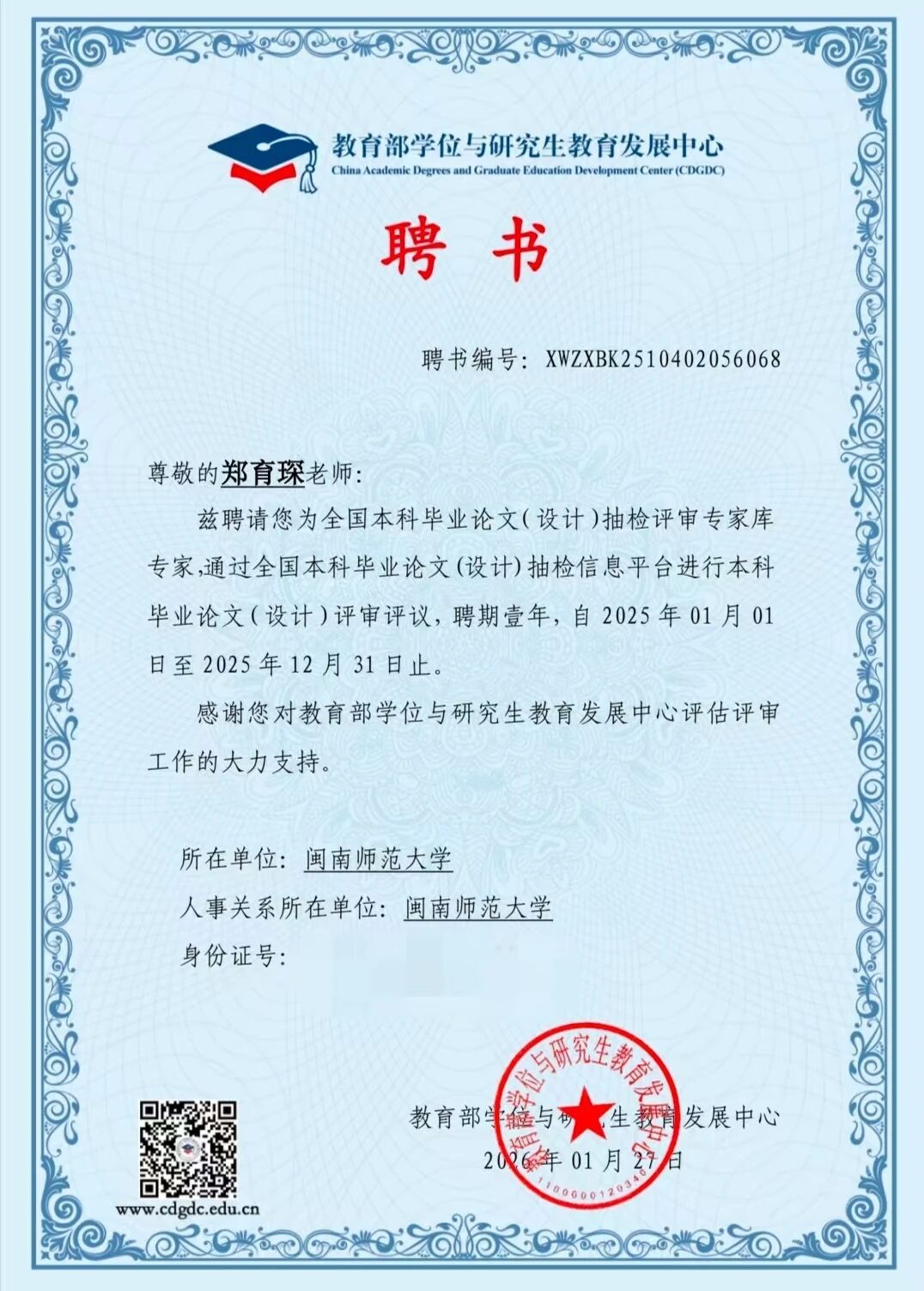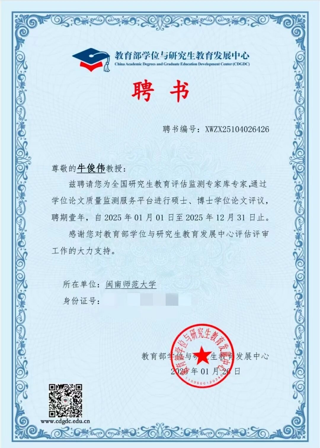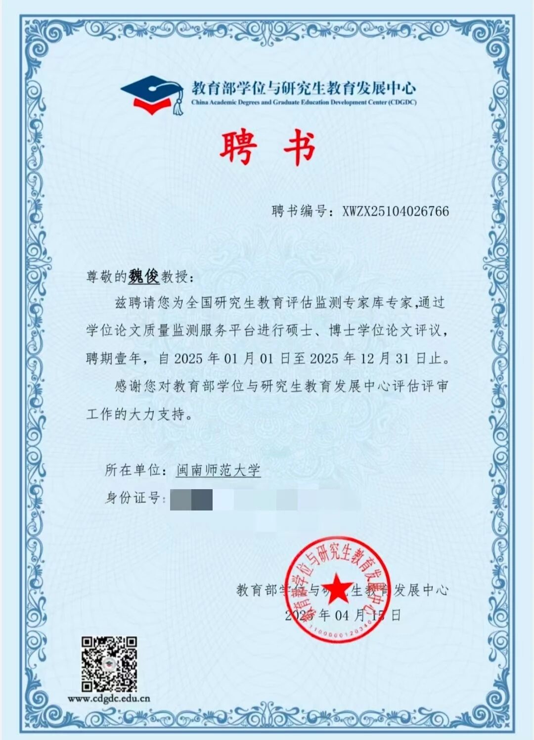 近日,我院七位教师受聘为教育部“全国研究生教育评估监测专家库专家”。此次聘任是对我院教师学术能力与专业贡献的高度认可,专家们将参与全国研究生教育评估监测、论文评审等工作,为研究生教育发展提供支持,助力国家高层次人才培养与教育评价体系建设。