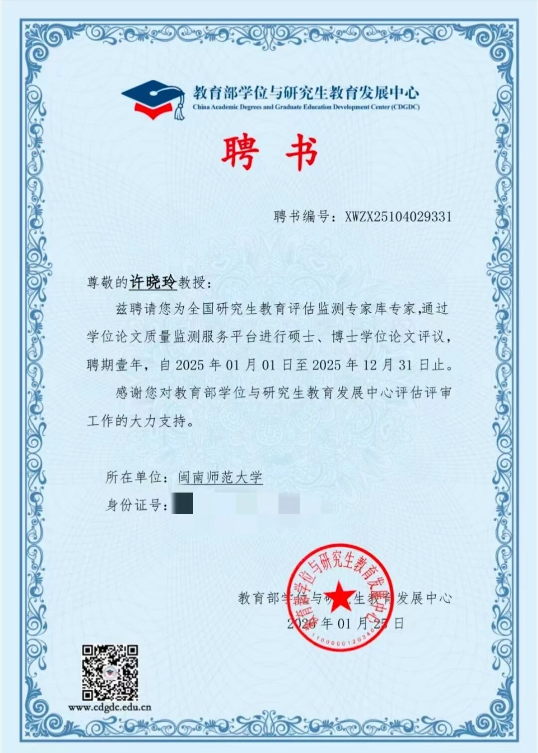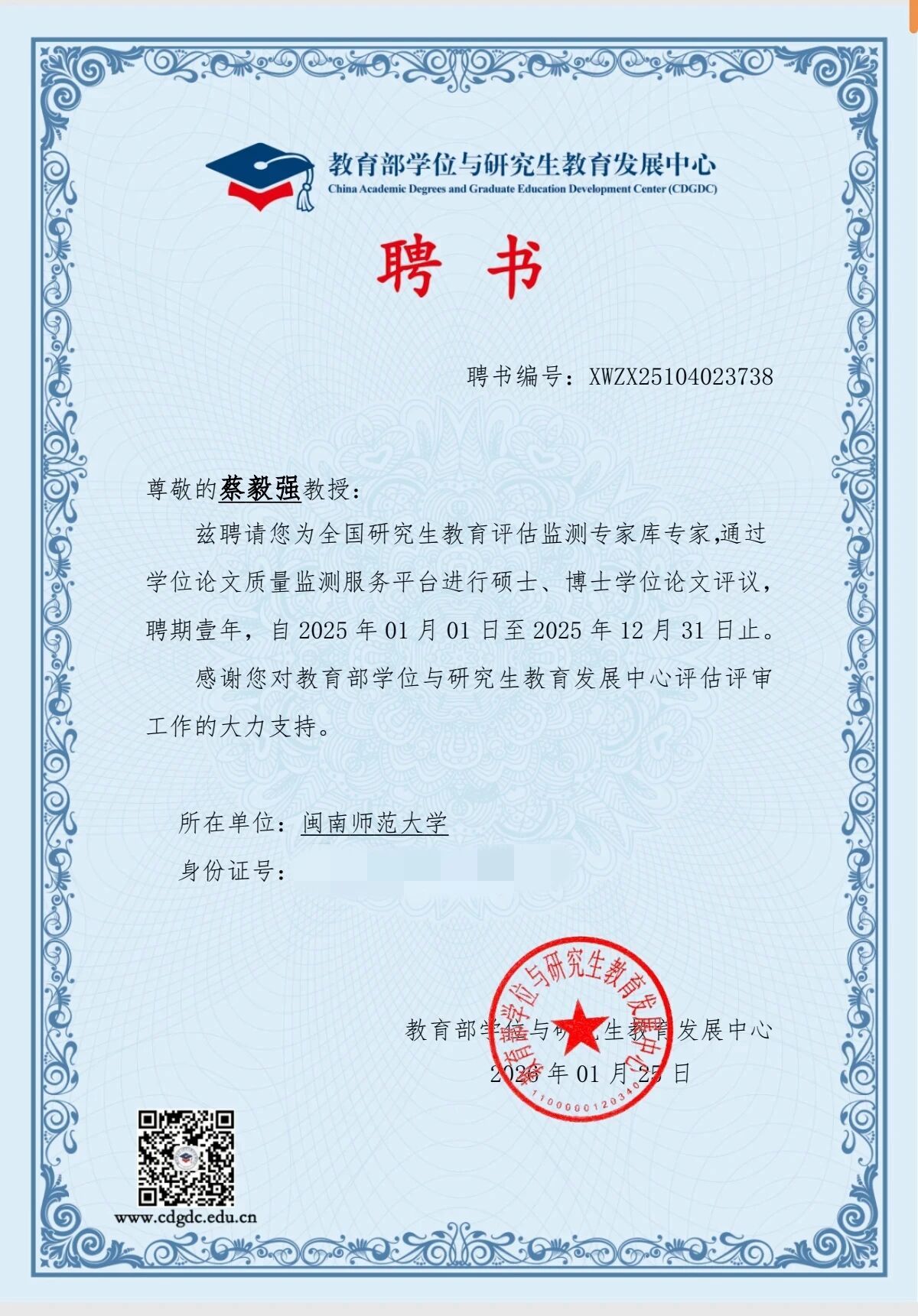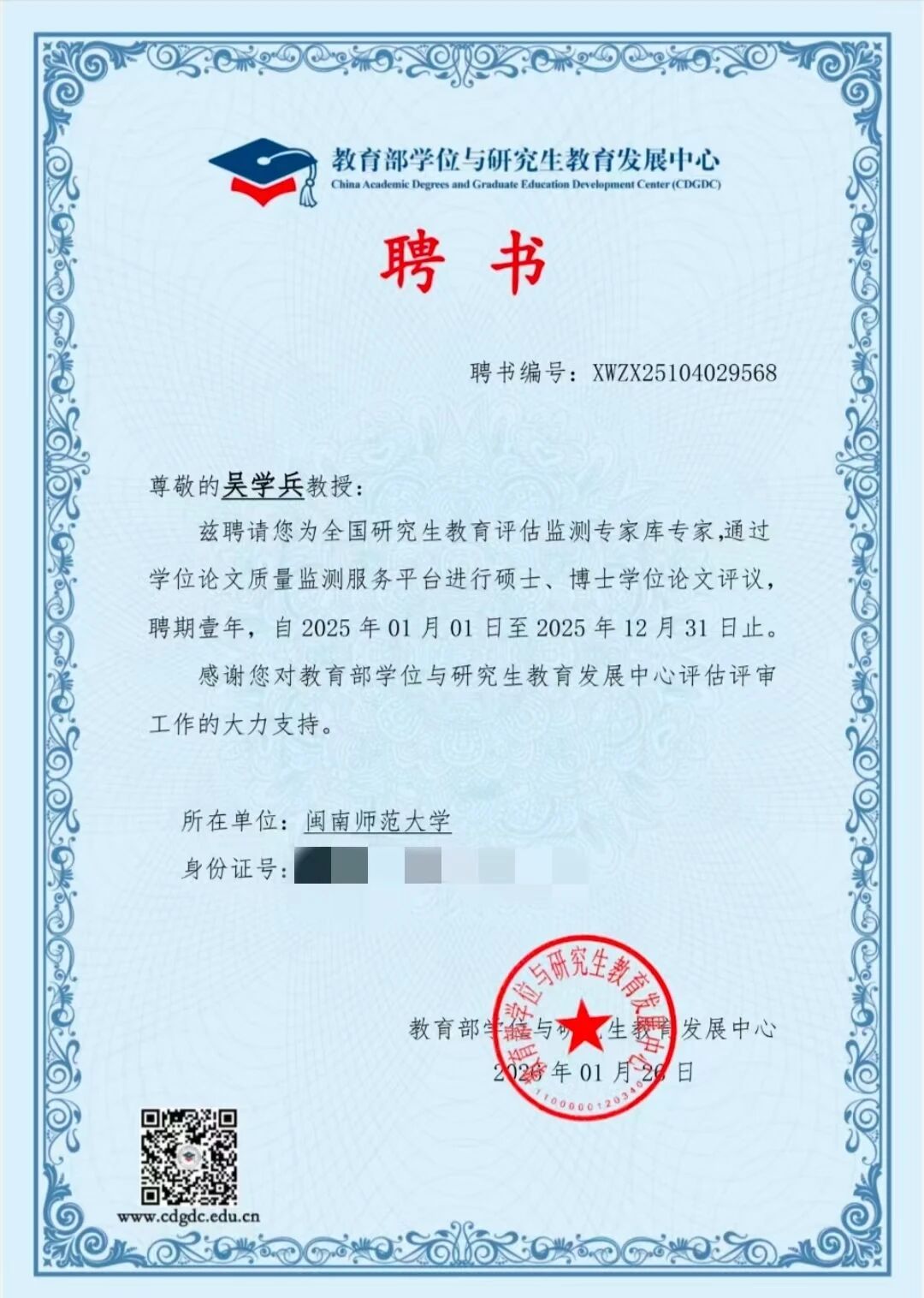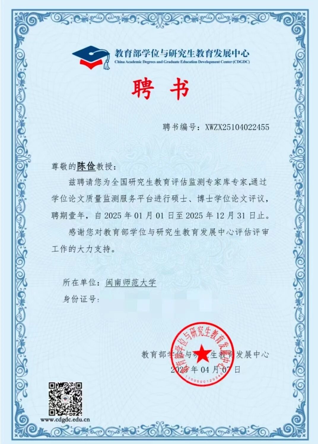 近日,我院七位教师受聘为教育部“全国研究生教育评估监测专家库专家”。此次聘任是对我院教师学术能力与专业贡献的高度认可,专家们将参与全国研究生教育评估监测、论文评审等工作,为研究生教育发展提供支持,助力国家高层次人才培养与教育评价体系建设。