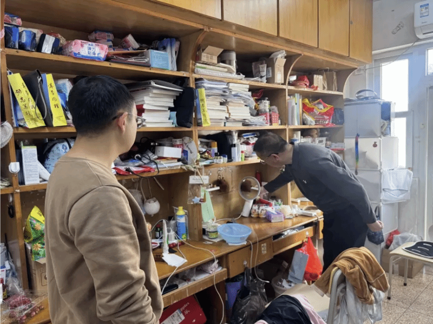 学工团队一行先后深入白宫、瑞京、达理、新研四大宿舍区,逐间开展消防安全全覆盖、无死角排查。检查重点聚焦电器使用规范、线路铺设安全及消防设施配备等情况,严查违规使用吹风机、卷发棒等大功率电器、私拉乱接电线、插座超负荷用电等安全隐患。排查过程中,团队同步开展面对面安全教育,详细说明违规用电的严重后果,系统普及消防安全常识,督促学生自觉遵守宿舍管理规定,确保隐患排查不留死角,共同维护安全、有序、和谐的住宿环境。