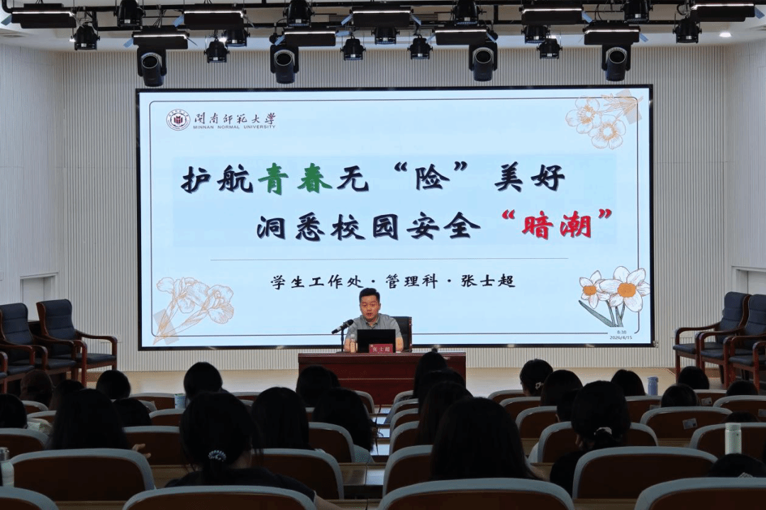 在第十一个全民国家安全教育日来临之际,为进一步增强师生安全防范意识,筑牢校园安全防线,4月14日至15日,学院积极组织师生参与由校学生工作处、保卫处、校团委联合主办的“统筹发展和安全 护航‘十五五’新征程”主题教育活动,并同步举办“护航青春无‘险’美好 洞悉校园安全‘暗潮’”专题讲座。此外,学院组织师生共同观看了全国大中小学生同上一堂总体国家安全观“思政大课”,并开展了国家安全主题AI视频制作活动,引导师生以创新的形式表达对国家安全的理解与担当。