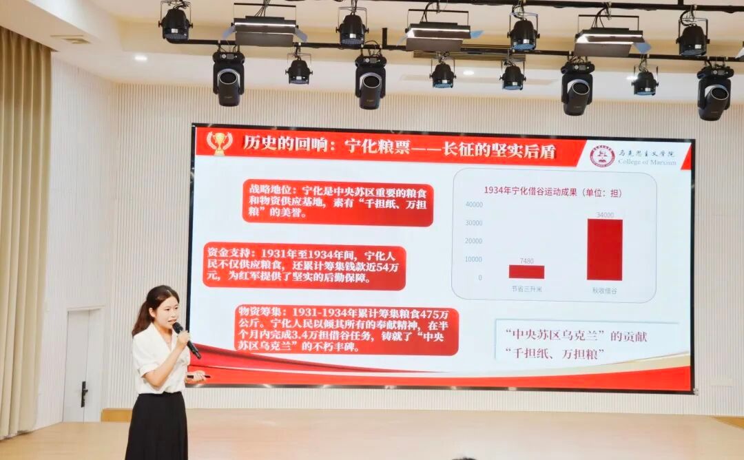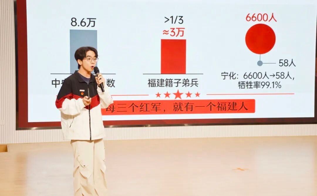 本次活动中,本科生15组选手以“赓续九秩光,奋楫启华章”为主题,立足青年独特视角,紧扣红军长征胜利90周年这一重大历史纪念节点,依托 AI 赋能教学创新,将宁化粮票、半条被子、芝山红楼等红色素材融入课堂,以小见大解读长征精神的时代内涵,把宏大叙事转化为可感可知的教学内容。