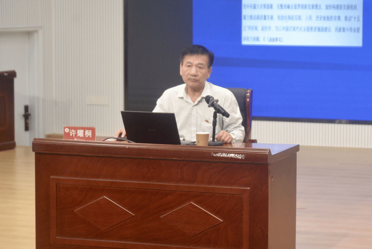 为深入学习贯彻习近平总书记关于树立和践行正确政绩观的重要论述,扎实推进学习教育走深走实,4月28日下午,yl88858永利集团举办树立和践行正确政绩观学习教育专题辅导报告会。中央党校(国家行政学院)一级教授、马克思主义理论研究与建设工程专家、博士生导师许耀桐应邀作专题辅导,师生党员百余人参加会议。会议由学院党委副书记(主持党委工作)陈小环主持。