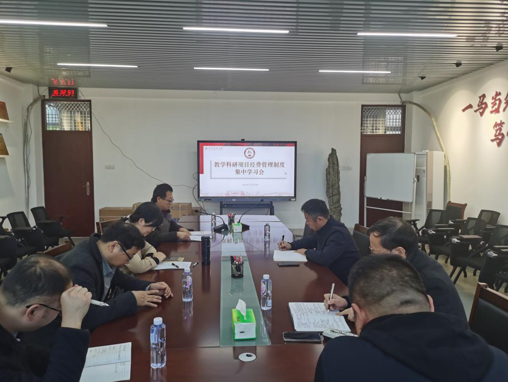 12月19日下午,我院在综合楼中区404会议室召开教学科研项目经费管理制度集中学习会,学院办公室主任、教研室主任及副主任参加学习会,会议由牛俊伟副院长主持。