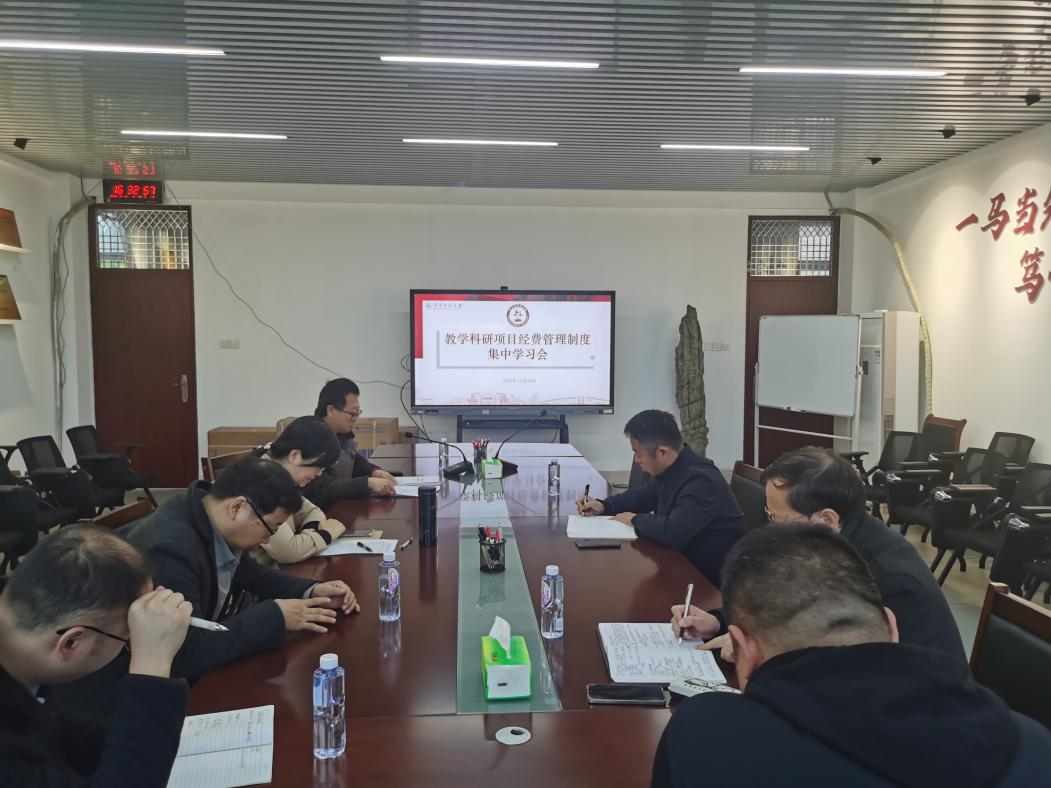 12月19日下午,我院在综合楼中区404会议室召开教学科研项目经费管理制度集中学习会,学院办公室主任、各教研室主任、副主任参加学习会,会议由牛俊伟副院长主持。