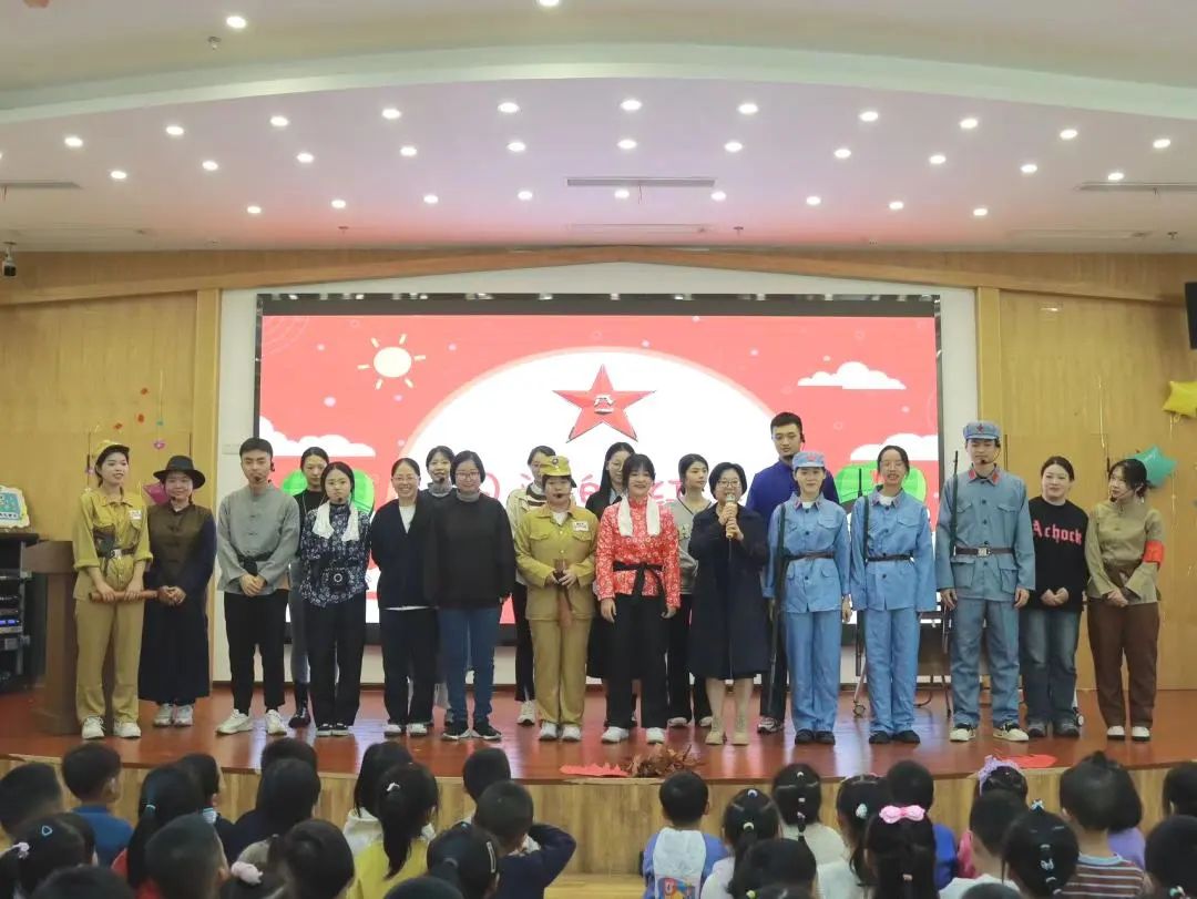 21名2023级硕士研究生以淋漓尽致的角色演绎、性格迥异的人物形象、跌宕紧凑的故事情节、丰富的肢体语言和情感充沛的声音把1937年红军长征的情节缩影在祖国的新生力量面前,为孩子们呈现了一场扣人心弦的视觉盛宴。