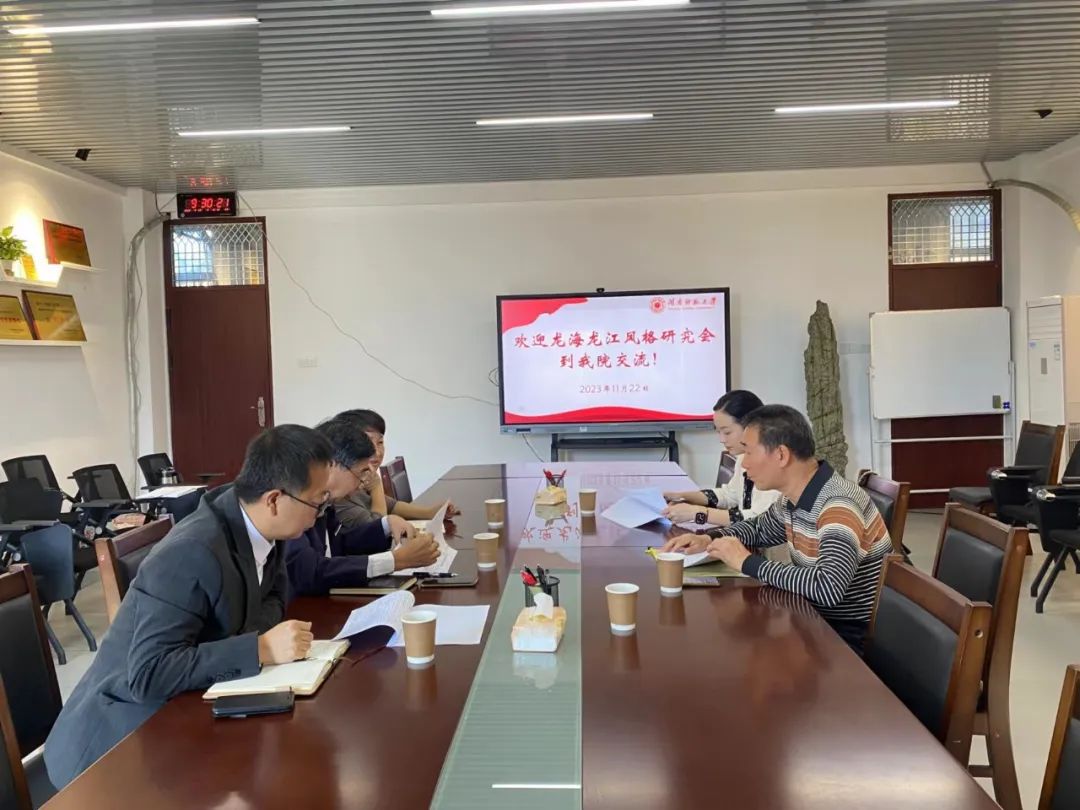11月22日上午,龙海龙江风格研究会到我院交流。我院党委书记方琼、院长陈再生教授、副院长牛俊伟教授在综合楼中区404与来宾进行洽谈交流。(通讯员 兰折)